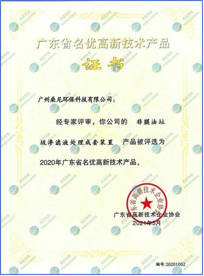 桑尼環(huán)保已申請和通過發(fā)明專利20余項,實用新型專利10余項,高新技術(shù)產(chǎn)品10余項,每年堅持自主研發(fā)新的專利技術(shù)和產(chǎn)品,不斷創(chuàng)新?!胺悄しɡ鴿B濾液處理成套裝置”評為廣東省名優(yōu)高新技術(shù)產(chǎn)品。